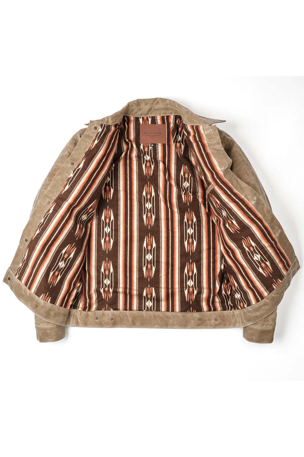 The Riders Jacket, or RJ-1 for short, was one of the first jackets Freenote ever designed. It is a unique mix of a classic ranch jacket combined with a riding jacket. The front pleats expand with movement along with the shoulder gussets in the back. Construction highlights include 1/8” stitch details and custom metal hardware made exclusively for Freenote Cloth. The RJ-1 is equipped with their signature action back for added mobility. Hidden elastic bands in the interior of the jacket help keep the shoulder gussets in place and allow for ease of movement in this heavy piece. In addition, the sleeves are lined with a cotton/rayon blend to make the jacket easier to put on and take off.