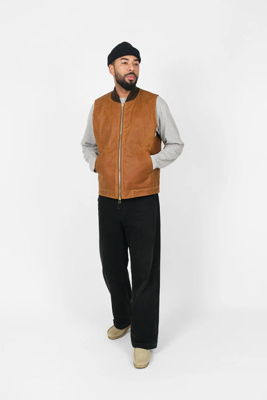 Metal zip front closure Chest pocket with zipper Welt pockets Adjustable tab closure at back waist Fully lined with light insulation Leather patch...