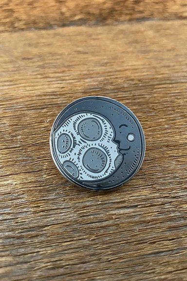 Moon Face Motif Size 1.02" x 1.03" Hard enamel pin with gold finish and butterfly clutch fastener