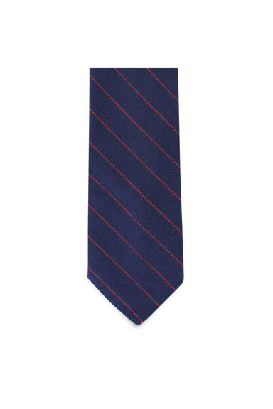 Classic CollectionSlim TieCottonBlue, Red Stripe2 1/2″ at Widest PointHandcrafted in Los Angeles, CAMade in the USADry Clean
