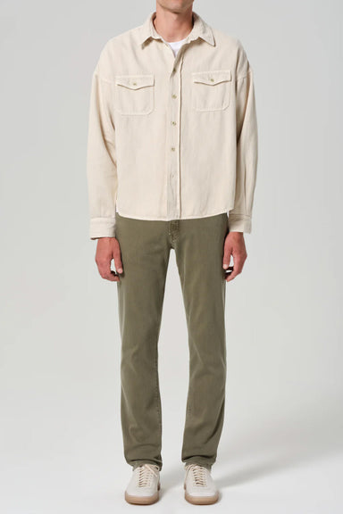 The Lou Slim Twill in Military is a regular rise, slim leg jean, made with a stretch denim. This fits true to size. Relaxed in the seat This strai...