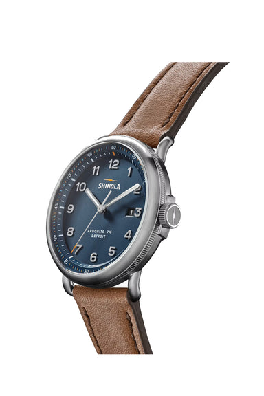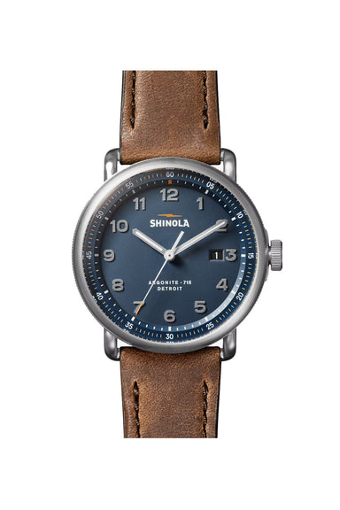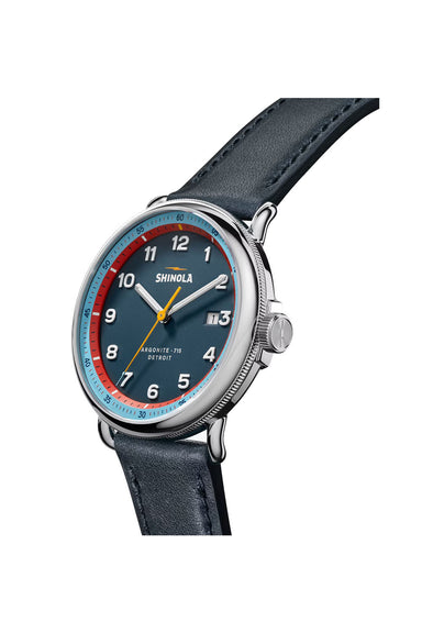 The classic traveler’s watch, reimagined through iconic Shinola Monster design. An orange-tipped fourth hand pops against the whiskey brown colored...