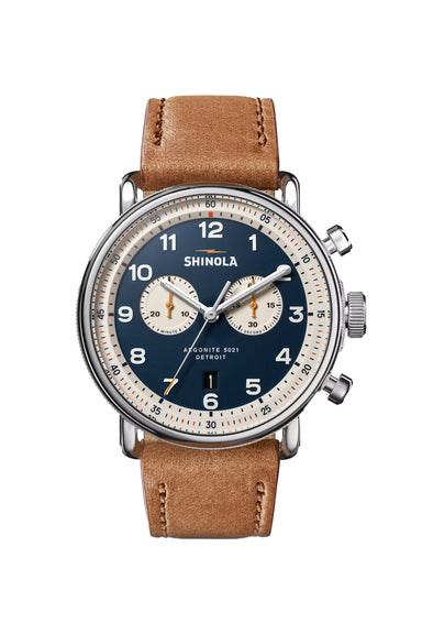 A classic chronograph with a modern twist. The Canfield Chrono is Shinola's first watch built using a top loaded case construction for a larger fac...