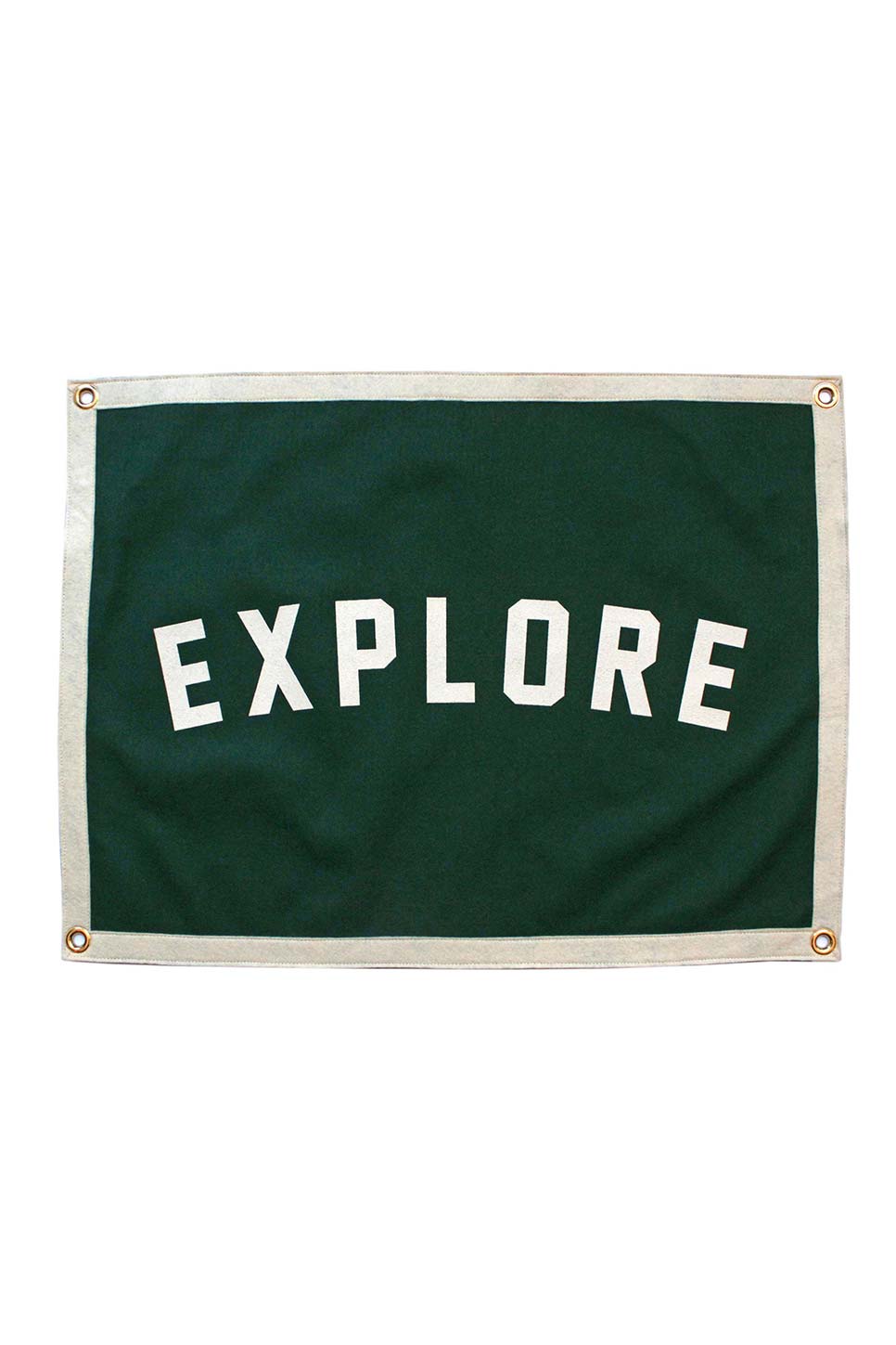 This custom Explore camp flag is perfect for explorers, campers, travelers, adventurers, lovers of the outdoors and sufferers of wanderlust.